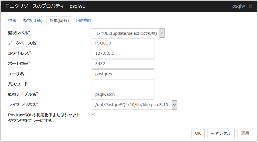 PostgreSQL モニタリソース 1 |
