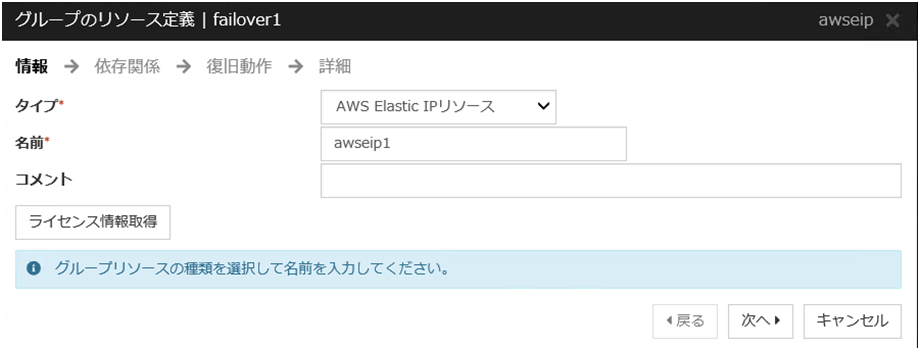 リソース awseip1 の起動に失敗しました。(99 : 内部エラーが発生しました。)