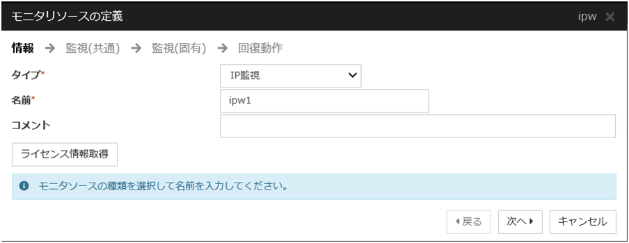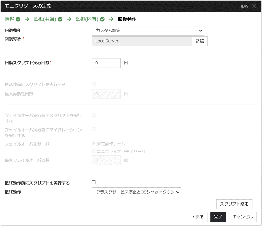 頻繁に警告が表示される場合は、「回復動作を実行しない(警告を表示しない)」へ変更することを推奨します。この場合でも、監視リソースから実行する AWS CLI の実行失敗や応答遅延以外のエラーは検知可能です。