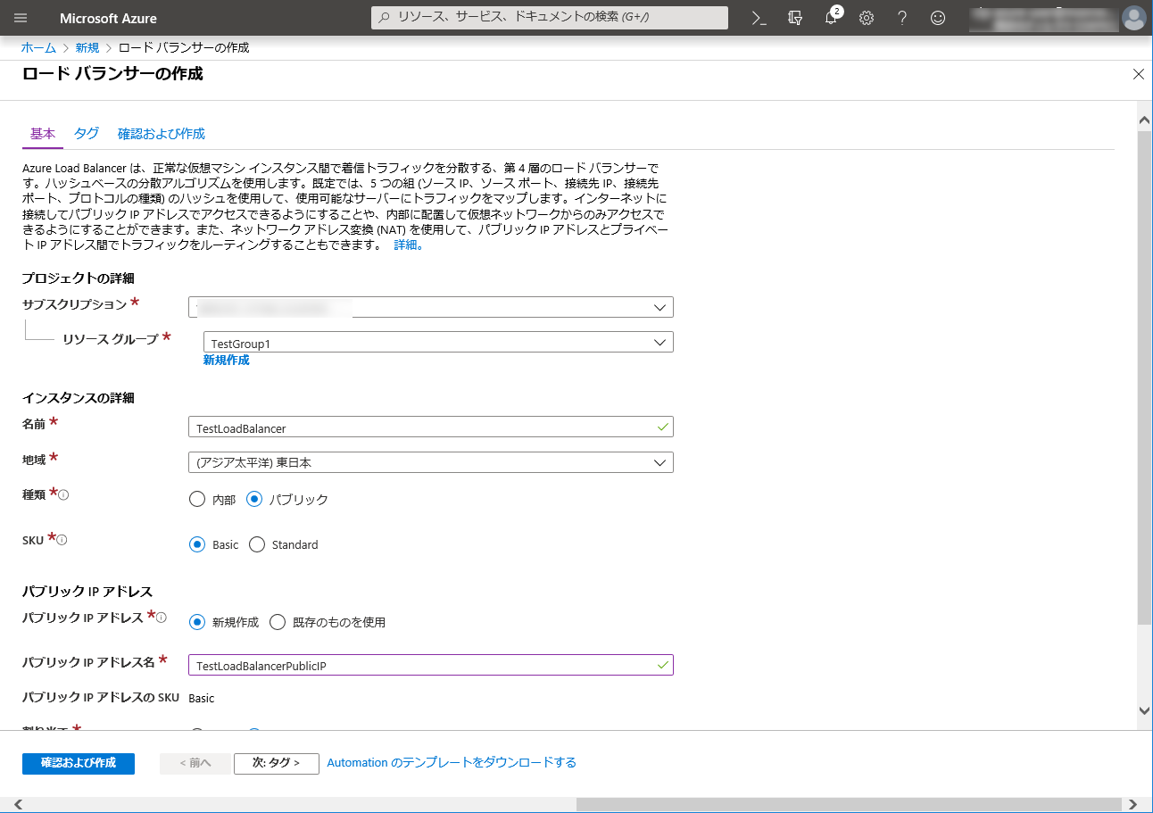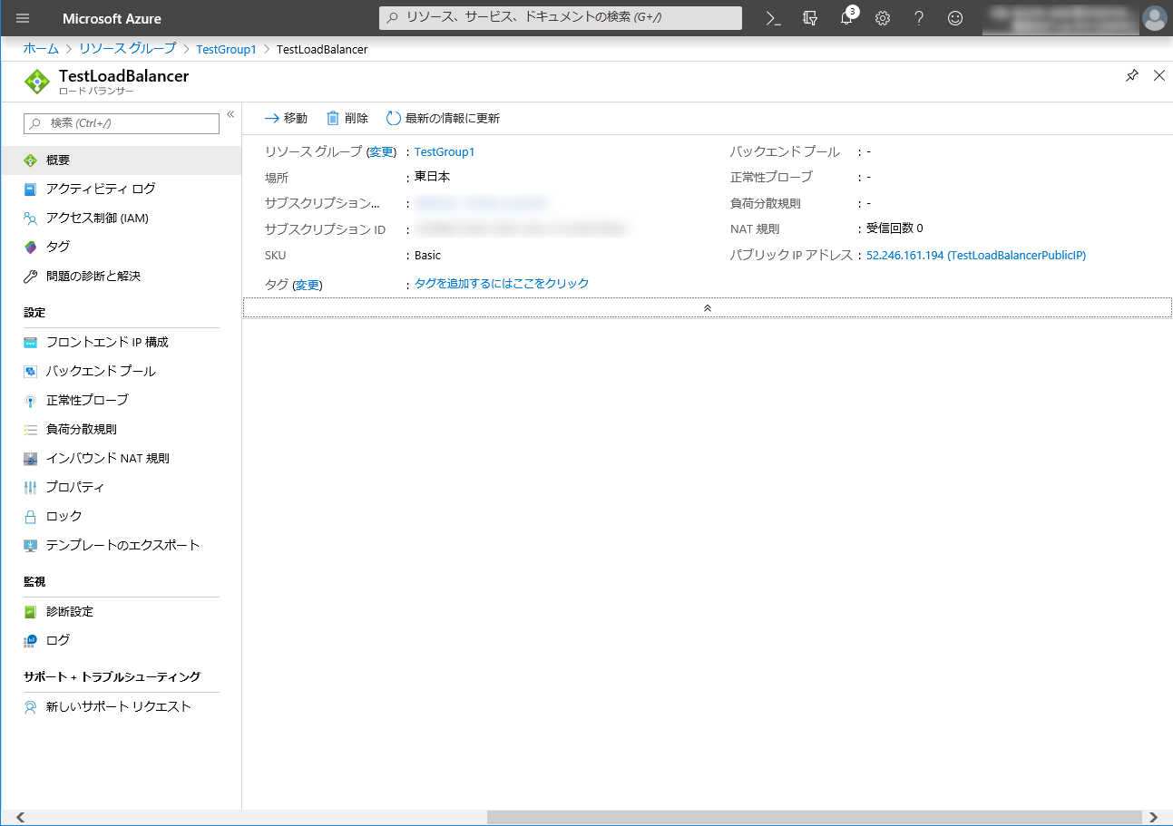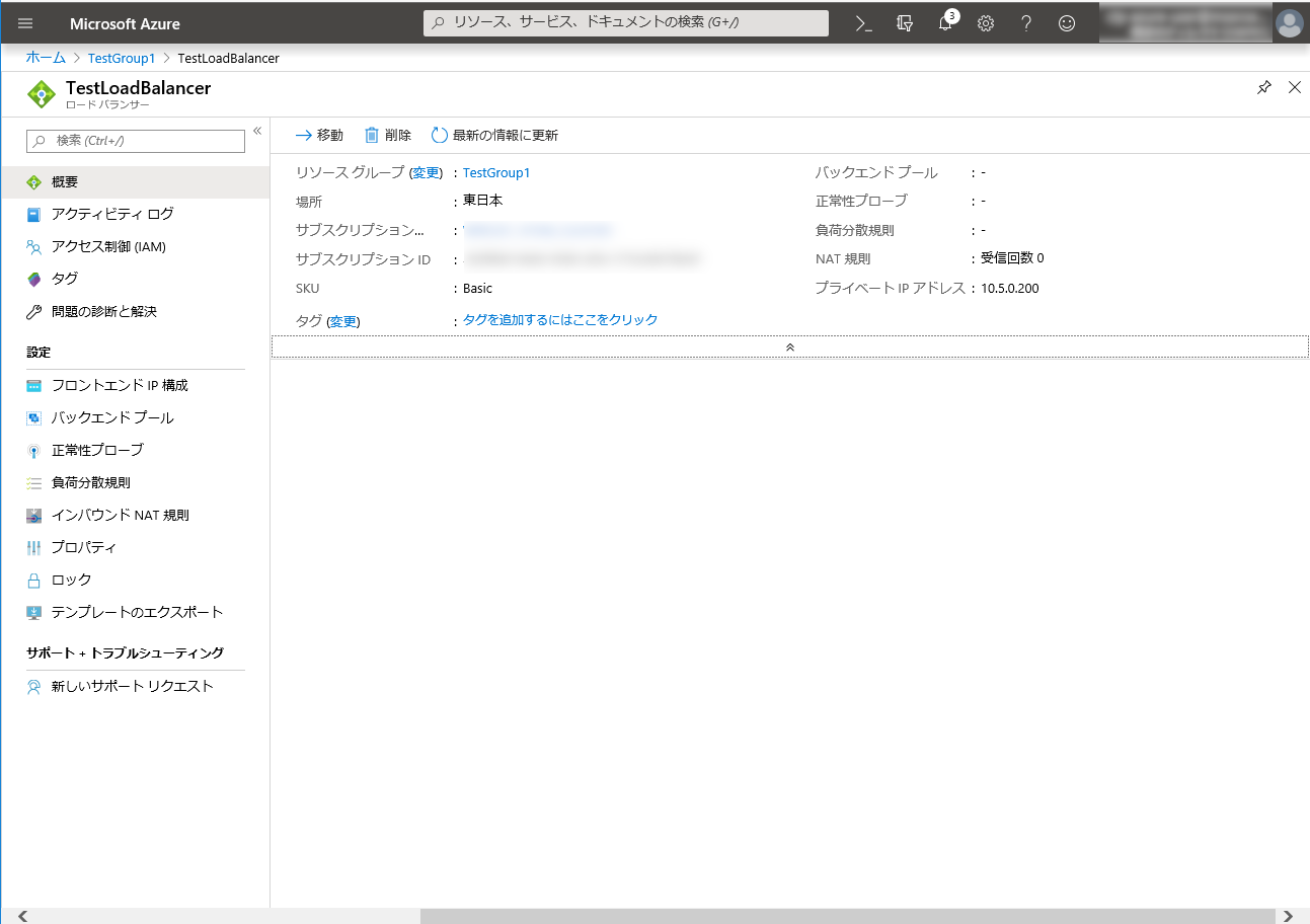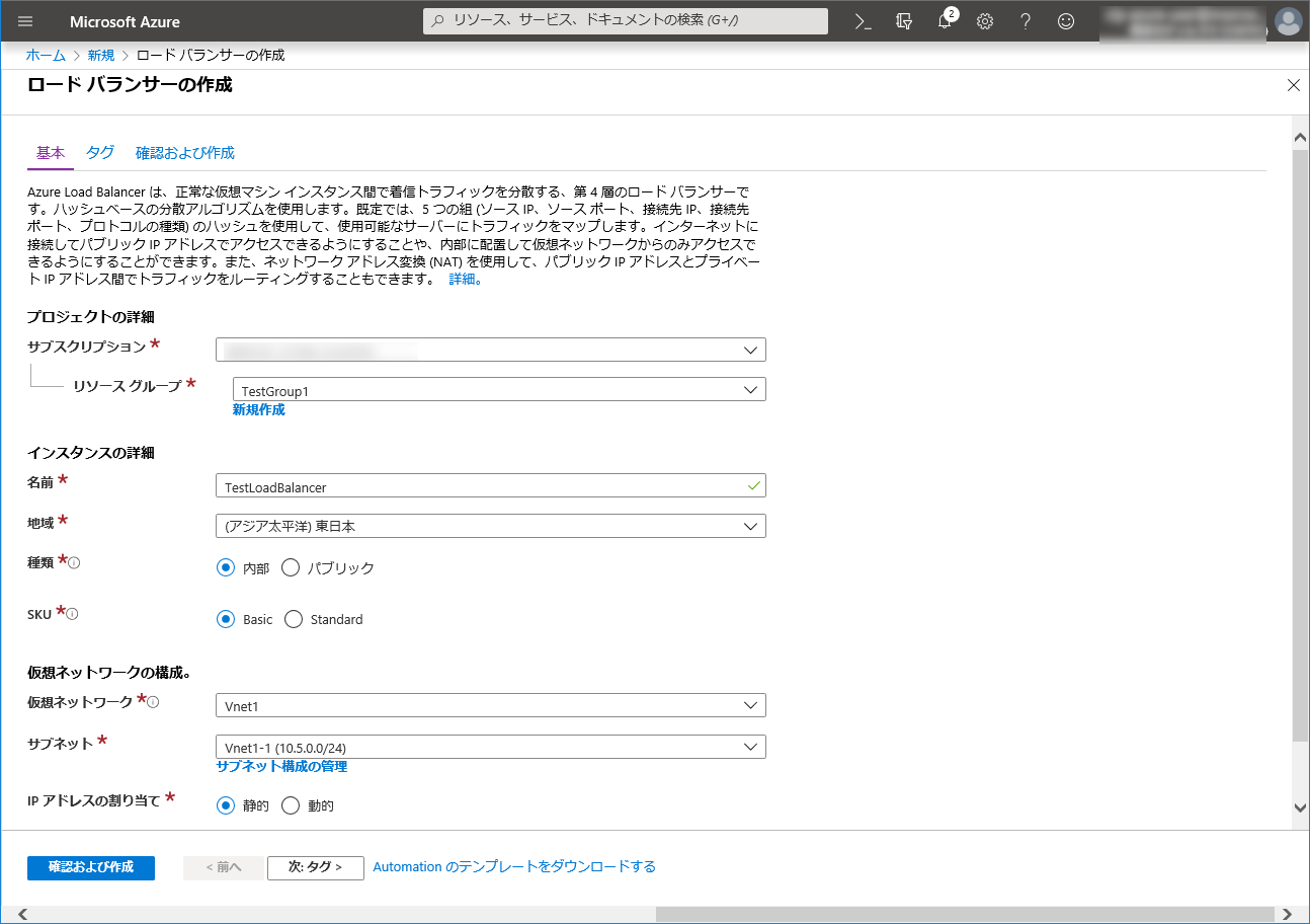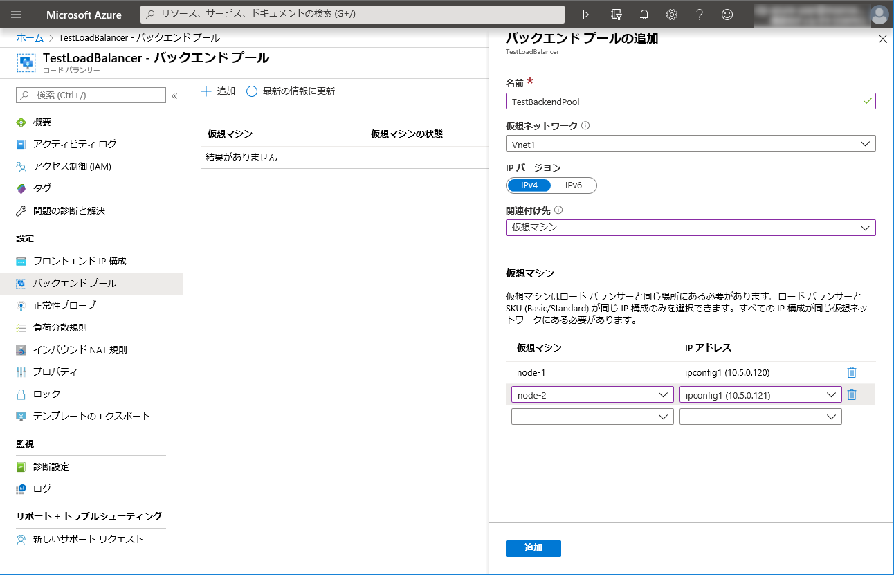 Microsoft Azure ポータル(https://portal.azure.com/)にログインし、以下の手順で内部ロードバランサーを追加します。詳細は以下のWebサイトを参照してください。