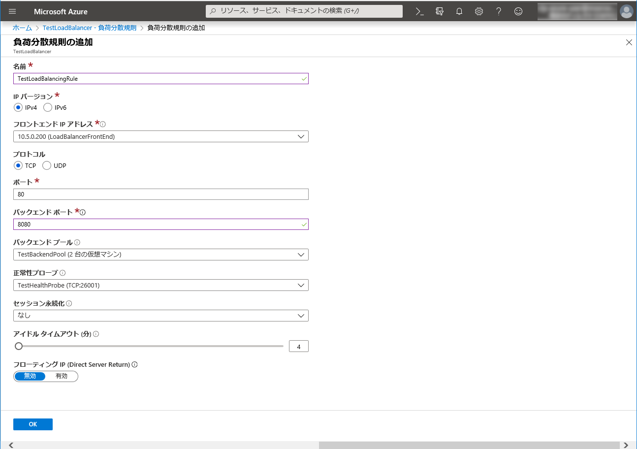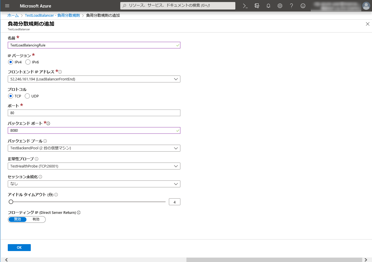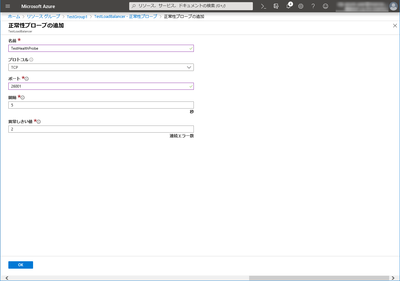 [プローブポート] にロードバランサーの設定(正常性プローブの設定)時に [ポート] として指定した値を入力します。