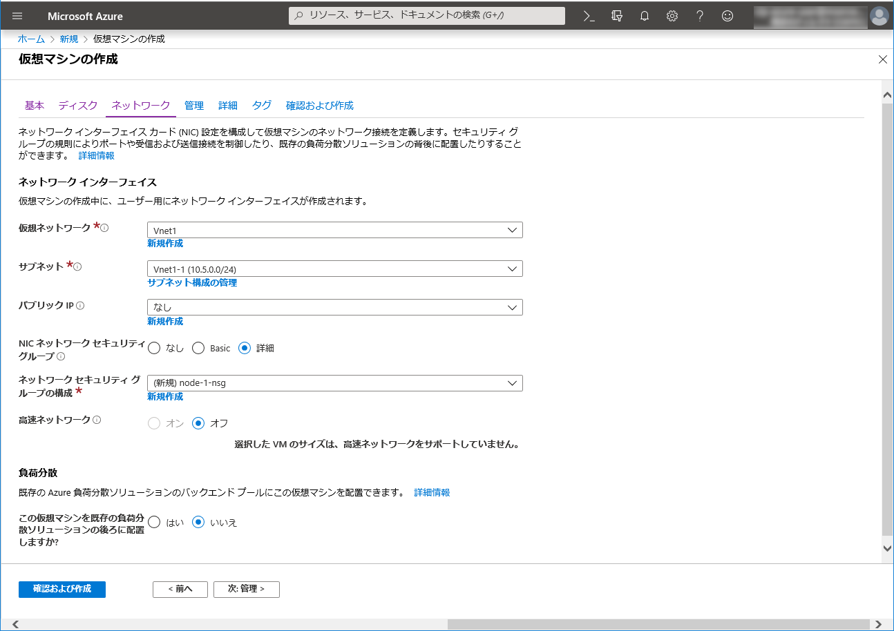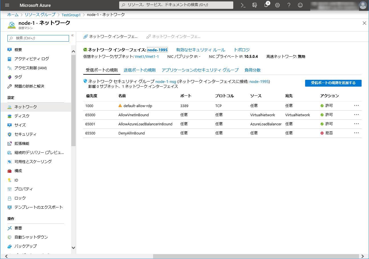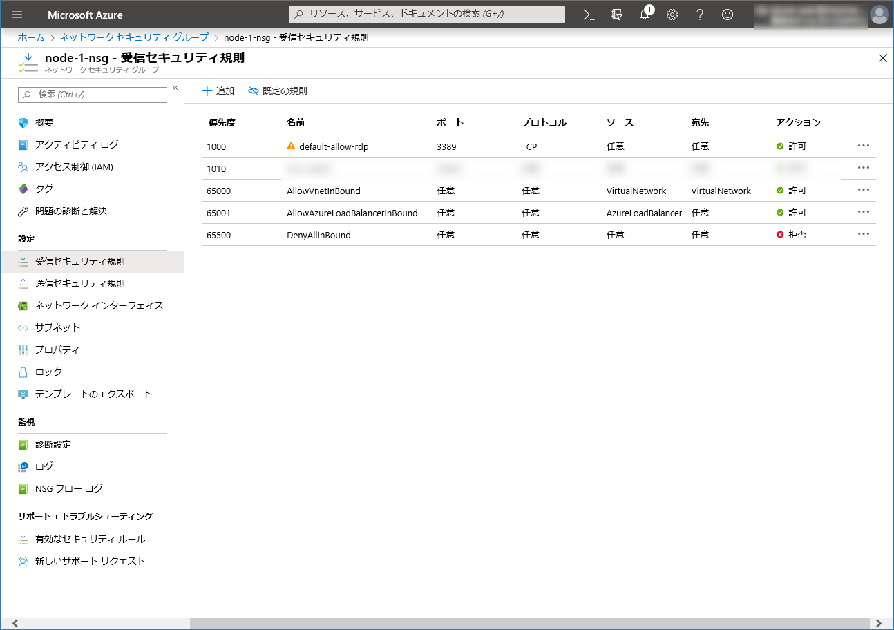 ネットワーク セキュリティ グループ一覧から、node-1 の場合は node-1-nsg、node-2 の場合は node-2-nsg を選択します。
