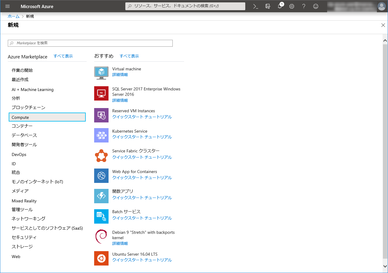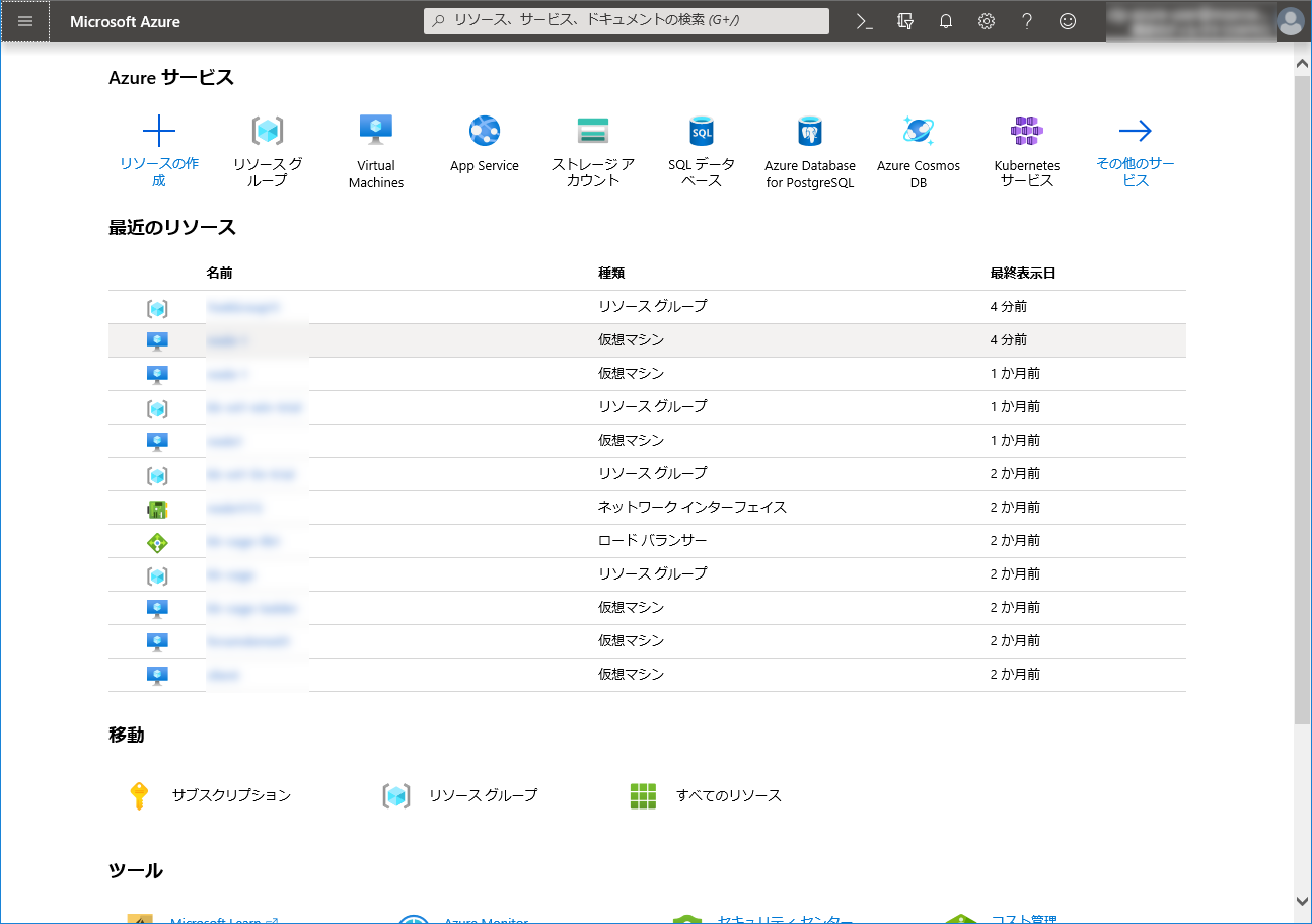 Microsoft Azure ポータル: 2019/12/19 時点の環境