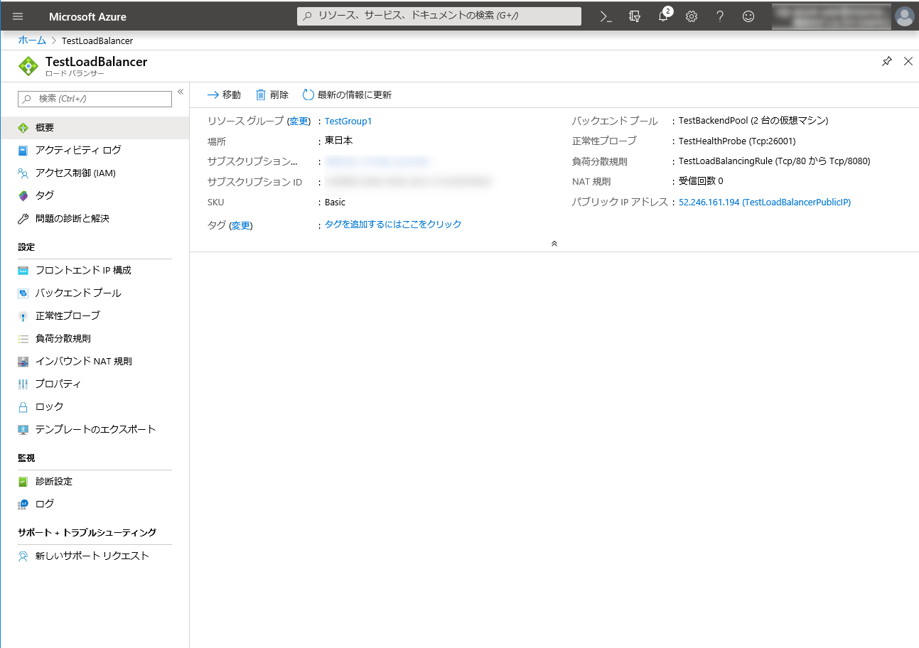 ロードバランサーのフロントエンドIP(パブリックIPアドレス)