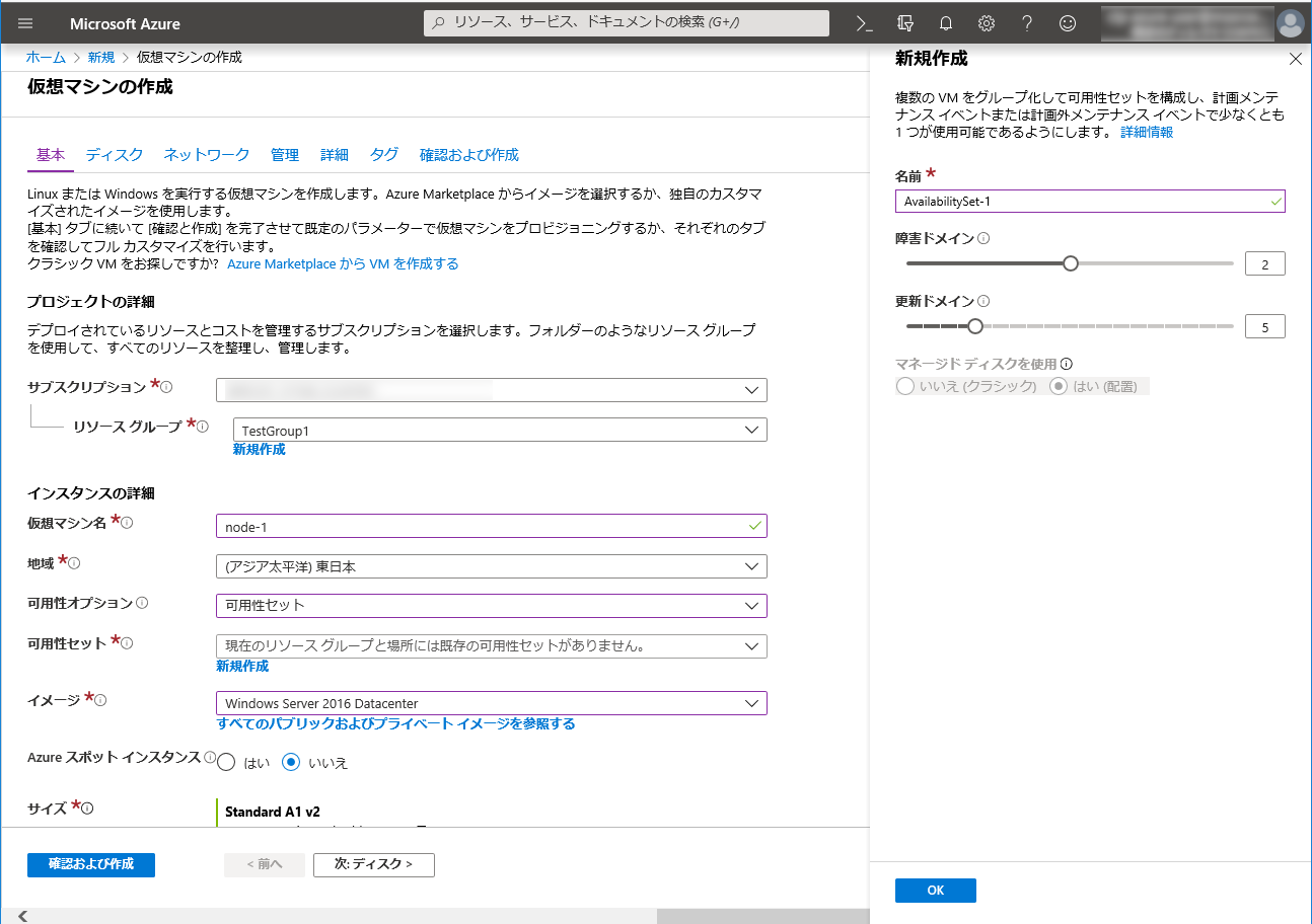 また、Microsoft Azureプラットフォームの計画済みメンテナンスや物理ハードウェアの障害などの計画外メンテナンスによる影響を最小限に抑えるために、2台の仮想マシンで同じ可用性セットを使用しています。