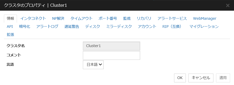 クラスタプロパティの詳細は『リファレンスガイド』 -「クラスタプロパティ」を参照してください。