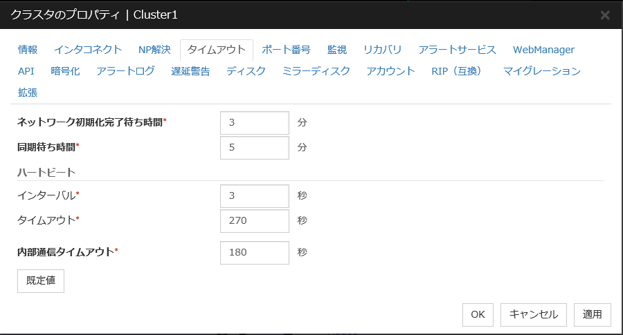 また、[ハートビートタイムアウト]と併せて以下も調整してください。