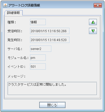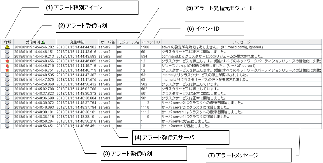 CLUSTERPRO 動作状況がメッセージとして表示されます。詳しくは「 2.5. WebManager でアラートを確認する」を参照してください。