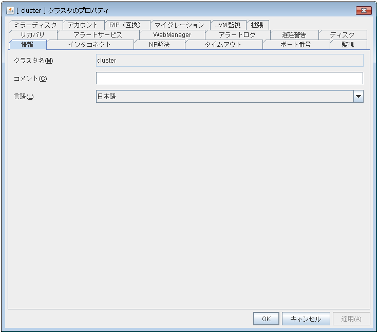 CLUSTERPRO X 4.0 より後のバージョンで追加変更された機能は、設定および表示することはできません。