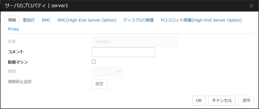 異機種のサーバでクラスタを構成する場合、BMC 機能が搭載されていないサーバがある場合には、BMC 機能が搭載されていないサーバの [BMC] タブは設定しないでください。