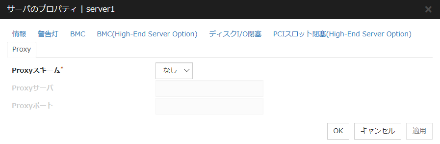 IP アドレス (80 バイト以内)BMC のマネージメント用 LAN ポートに設定している IP アドレスを入力します。 ユーザ名 (255 バイト以内)BMC に設定されているユーザ名のうち Administrator 権限を持っているユーザ名を入力します。入力をしない場合には [ipmitool] コマンドを実行するときにユーザ名の引数を設定しません。実際に有効なユーザ名の長さは、[ipmitool] コマンドやサーバの BMC の仕様に依存します。 パスワード (255 バイト以内)上記で設定したユーザのパスワードを入力します。実際に有効なパスワードの長さは、[ipmitool] コマンドやサーバの BMC の仕様に依存します。ユーザ名、パスワードについてはサーバのマニュアルなどを参照してください。