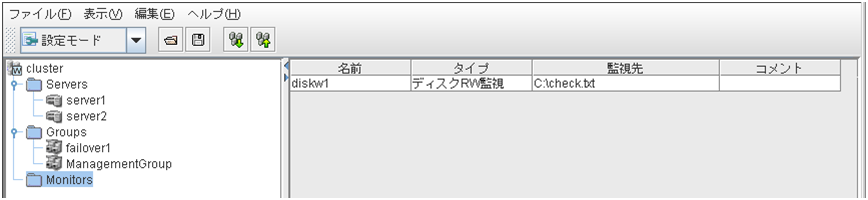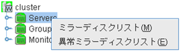 サーバ、グループリソース等の各クラスタ資源の状態が確認できます。詳しくは「 2.3. WebManager のツリービューで各オブジェクトの状態を確認するには 」を参照してください。