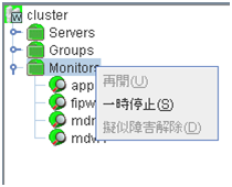 - 検証モード任意のモニタリソースで擬似障害を発生/解除させるためモードです。[表示] メニューの [検証モード] を選択するか、ツールバーのドロップダウンメニューで [
