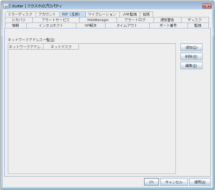 CLUSTERPRO X 4.0 より後のバージョンで追加変更された機能は、設定および表示することはできません。