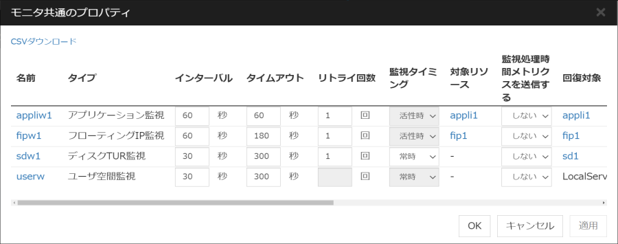 モニタリソース名 |