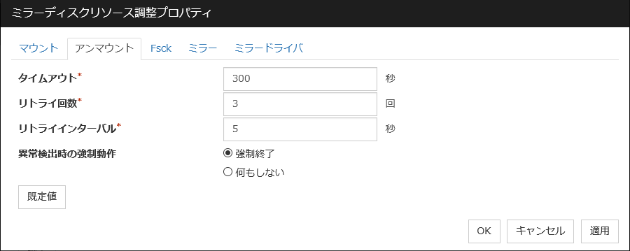 - フェイルオーバ属性フェイルオーバ属性ではフェイルオーバの方法を設定します。設定可能なフェイルオーバ属性は以下になります。