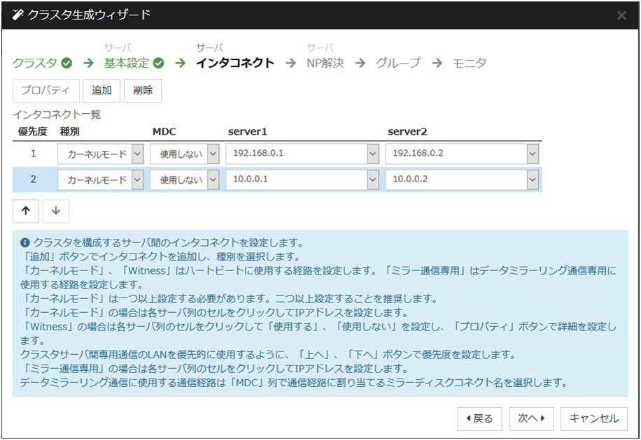 クラスタ サーバ間の通信パス