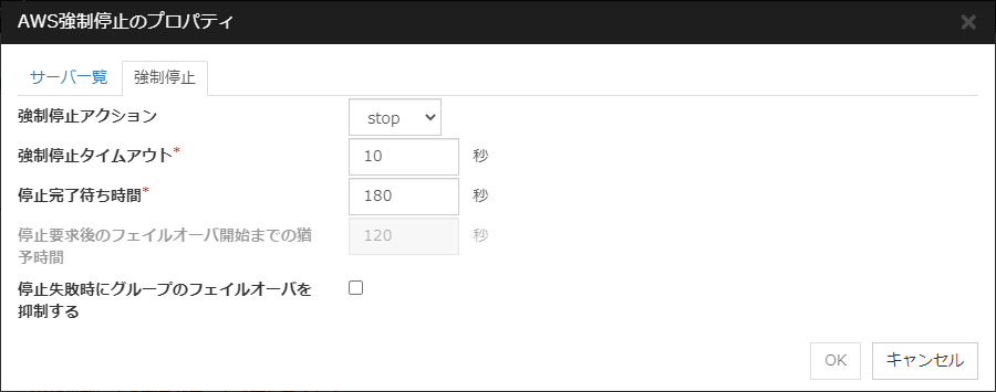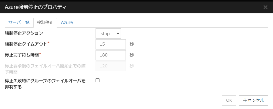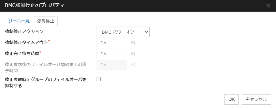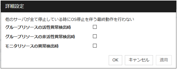 チェックボックスがオンフェイルオーバ前にサーバの生存確認を行います。 チェックボックスがオフフェイルオーバ前にサーバの生存確認を行いません。