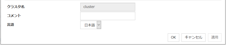 クラスタのコメントを設定します。半角英数字のみ入力可能です。