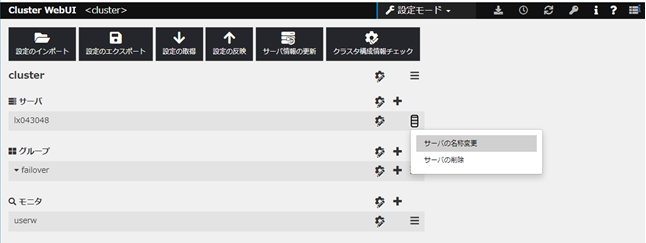 [その他]メニューをクリックして、[クラスタの名称変更]を選択してください。