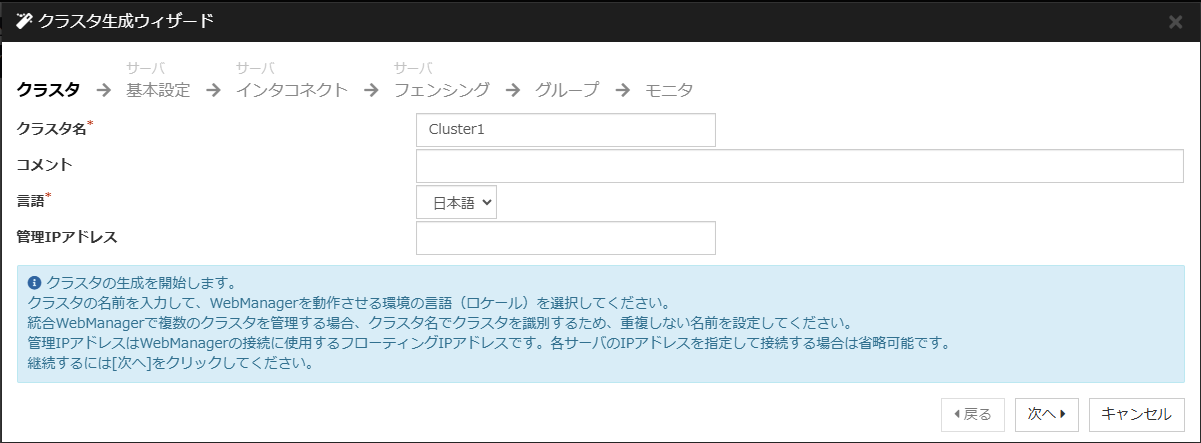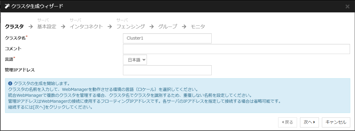動作環境については 「スタートアップガイド」-「CLUSTERPRO の動作環境」を参照してください。