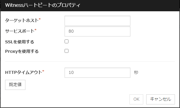 Witnessサーバとの通信にProxyを使用するか設定します。チェックボックスがオンの場合、サーバプロパティのProxyタブの設定が有効になります。 オフの場合はサーバプロパティの設定に関わらずProxyを使用しません。
