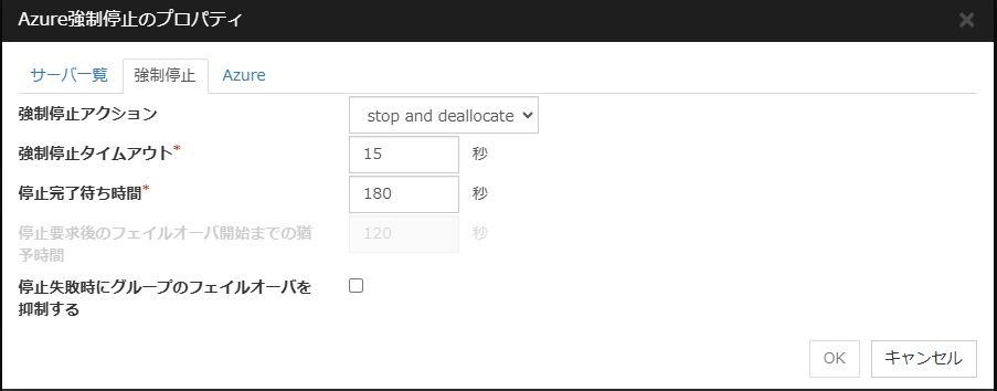 チェックボックスがオンフェイルオーバ前にサーバの生存確認を行います。 チェックボックスがオフフェイルオーバ前にサーバの生存確認を行いません。