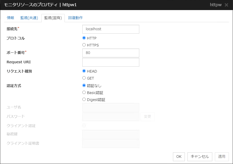 チェックボックスがオン(既定)登録した IP アドレスが仮想ホスト名(DNS 名)の名前解決によって得られるかを確認します。 チェックボックスがオフ監視しません。