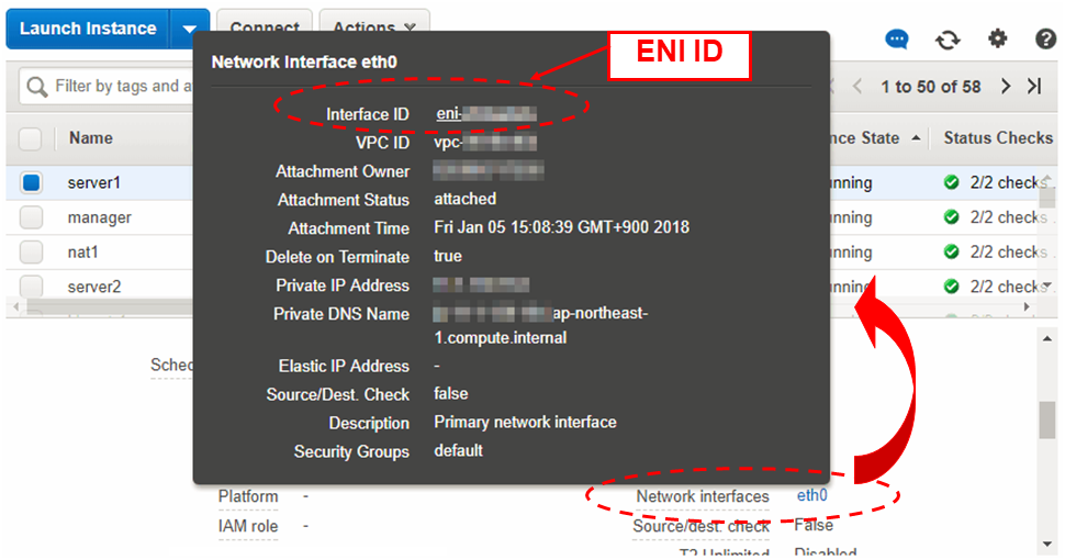 AWS 仮想 IP リソースに設定した ENI の Source/Dest. Check を無効に設定します。