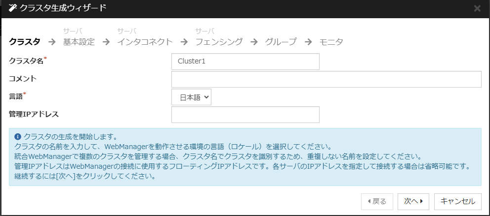 動作環境については 「スタートアップガイド」-「CLUSTERPRO の動作環境」を参照してください。