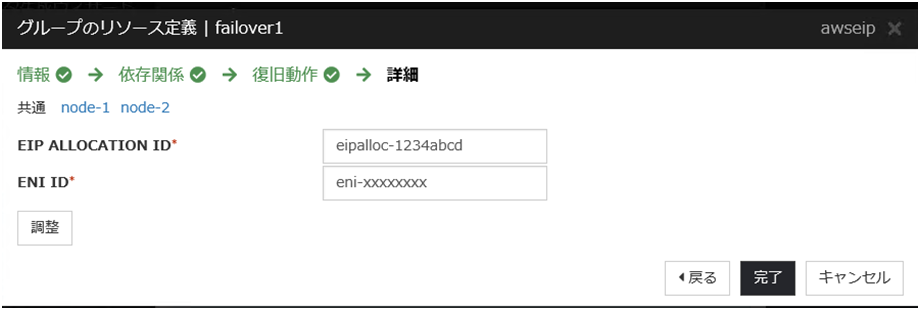 異常を検知した時点でAWS Elastic IP リソースが自動的に再起動され、指定したENI IDとElastic IPの関連付けが行われます。Elastic IPとの関連付けが変更された原因として、他のHAクラスタで同じEIP Allocation IDを誤って使用していないかなどを確認します。