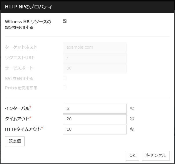 Witnessサーバとの通信にProxyを使用するか設定します。チェックボックスがオンの場合、サーバプロパティのProxyタブの設定が有効になります。 オフの場合はサーバプロパティの設定に関わらずProxyを使用しません。