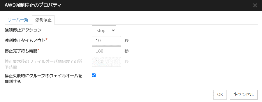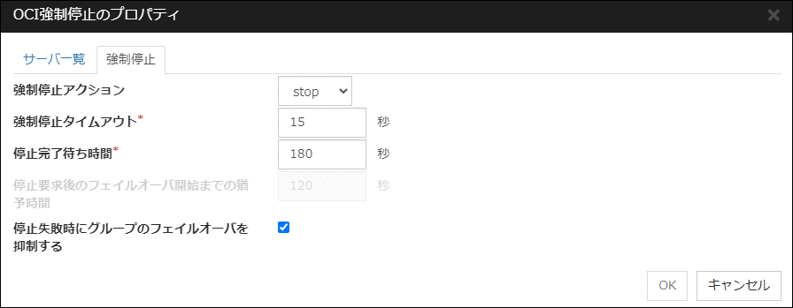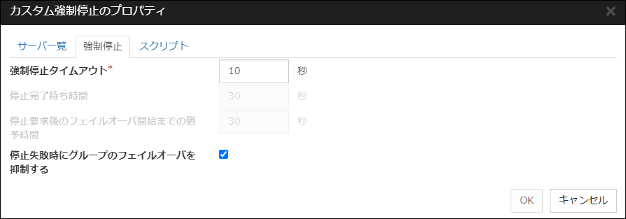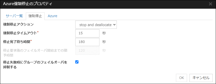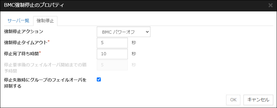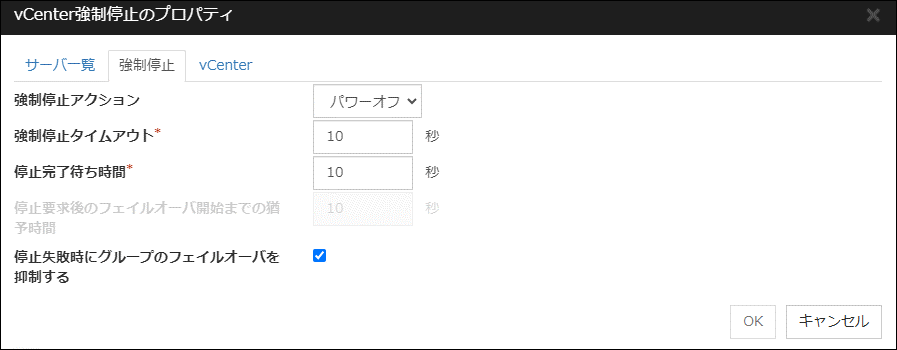 チェックボックスがオンフェイルオーバ前にサーバの生存確認を行います。 チェックボックスがオフフェイルオーバ前にサーバの生存確認を行いません。