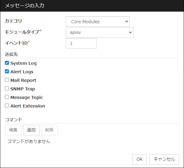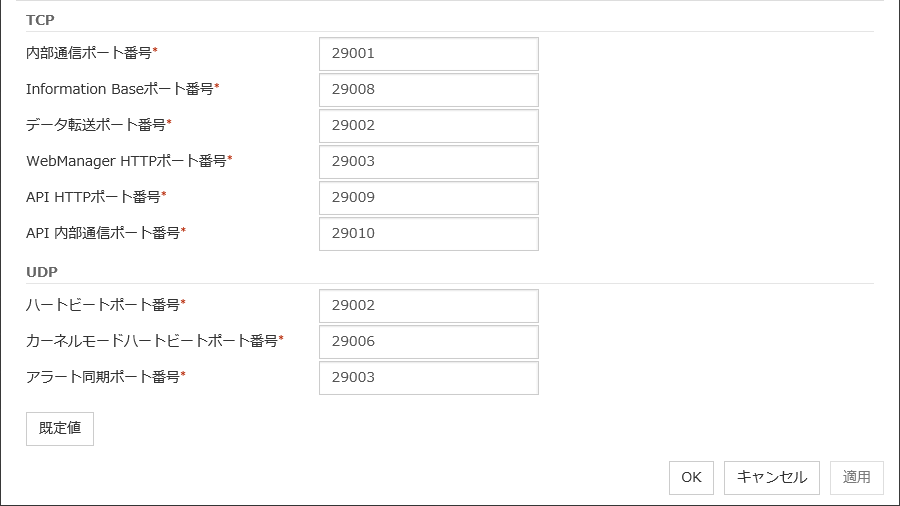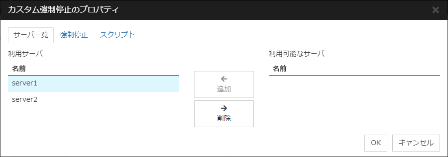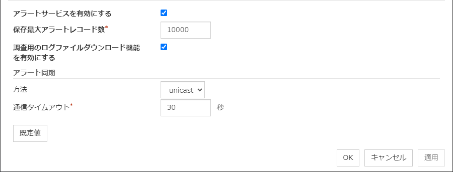 チェックボックスがオンサーバダウン通知を行います。 チェックボックスがオフサーバダウン通知を行いません。注釈