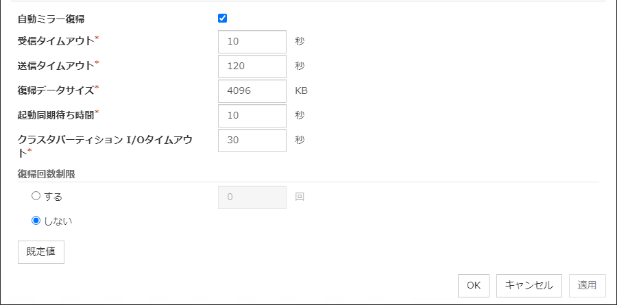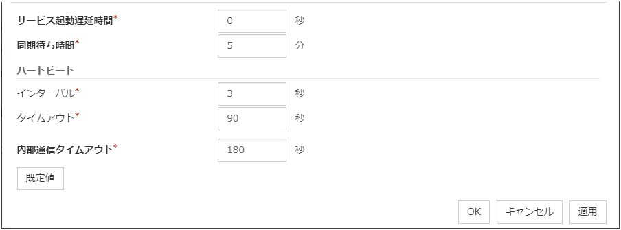 サーバ生存確認のタイムアウトを設定します。ハートビートタイムアウトよりも大きな値を設定した場合は、ハートビートタイムアウトがタイムアウトとして使用されます。
