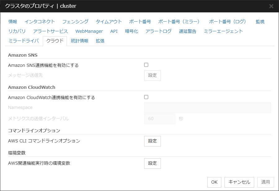 使用するライブラリは、クラスタプロパティの暗号化タブの [SSL ライブラリ] および [Crypto ライブラリ] にて設定してください。