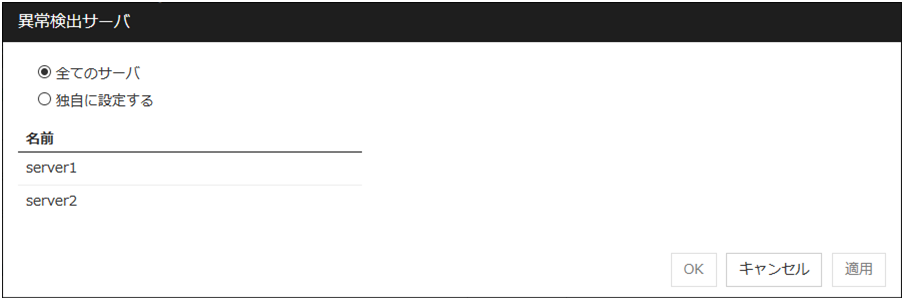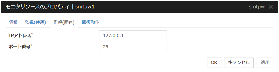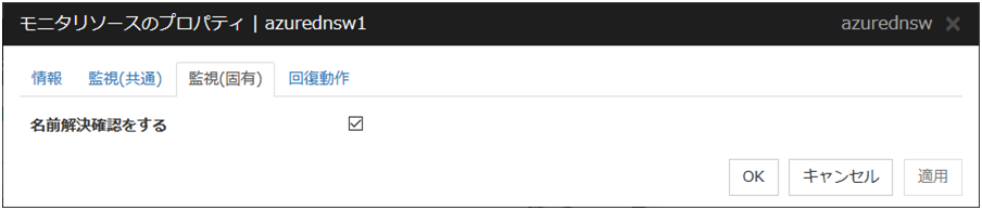 チェックボックスがオン(既定)登録した IP アドレスが仮想ホスト名(DNS 名)の名前解決によって得られるかを確認します。 チェックボックスがオフ監視しません。