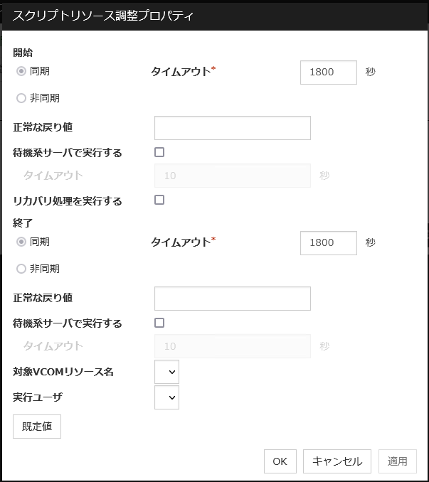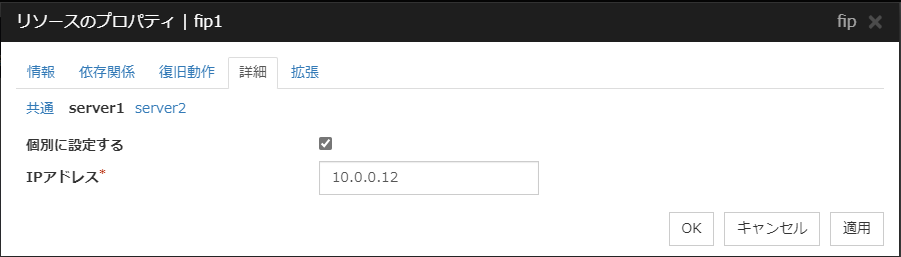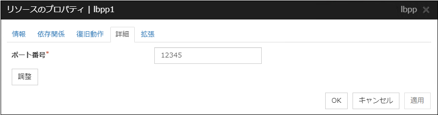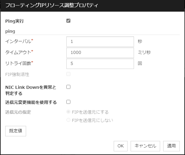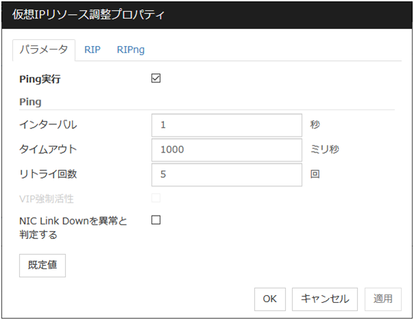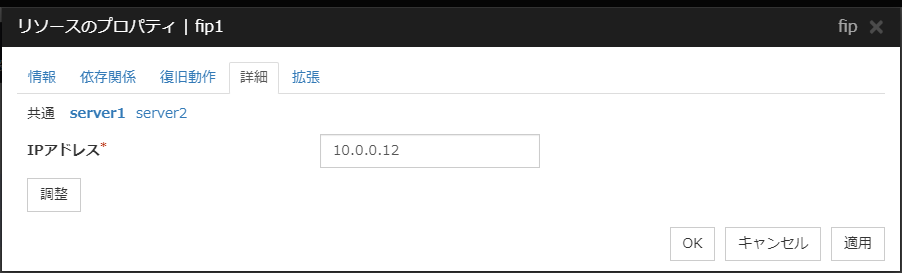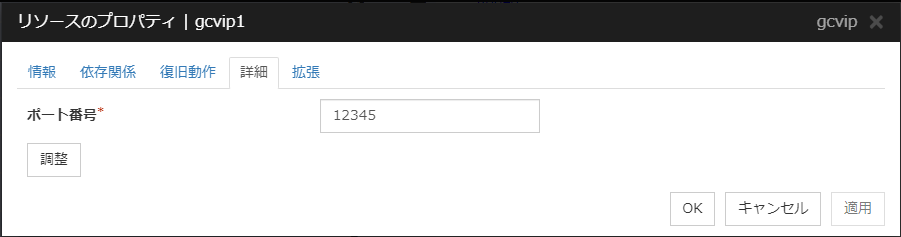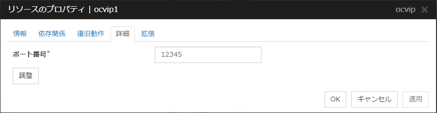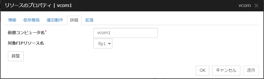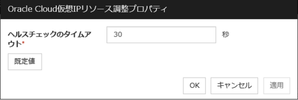 [Oracle Cloud 仮想 IP リソース調整プロパティ] ダイアログボックスを表示します。Oracle Cloud 仮想 IP リソースの詳細設定を行います。