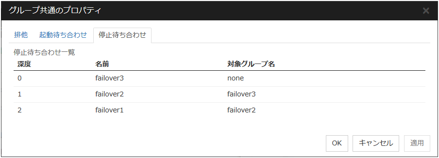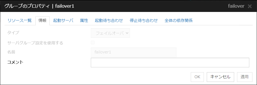 グループとはフェイルオーバを行う単位です。各グループにおいてフェイルオーバ時の動作に関する規則 (フェイルオーバポリシー) が設定できます。