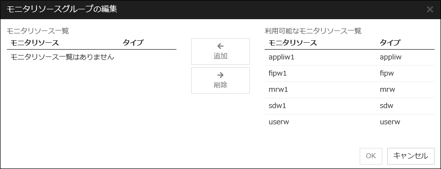 指定されたモニタリソースの状態