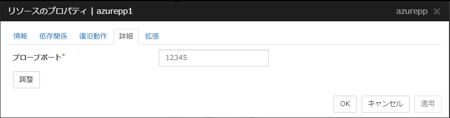 [Azure DNS リソース調整プロパティ] ダイアログボックスを表示します。Azure DNS リソースの詳細設定を行います。