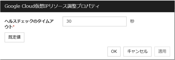 [Google Cloud 仮想 IP リソース調整プロパティ] ダイアログボックスを表示します。Google Cloud 仮想 IP リソースの詳細設定を行います。