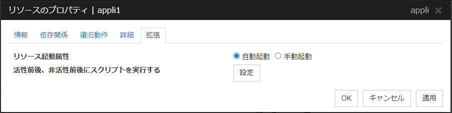 - グループ起動属性グループの起動属性を自動起動、または手動起動に設定します。自動起動の場合、クラスタを開始する際に、グループが起動可能な最も優先順位の高いサーバで、グループが自動的に起動します。手動起動の場合、サーバが起動してもグループは起動しません。サーバ起動後、Cluster WebUI または [clpgrp] コマンドを使用してグループを手動で起動してください。Cluster WebUIの詳細はオンラインマニュアル、[clpgrp] コマンドの詳細は本ガイドの「9. CLUSTERPRO コマンドリファレンス」の「グループを操作する (clpgrp コマンド)」を参照してください。