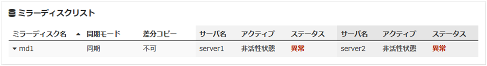 自動ミラー復帰が無効になっている場合には、コマンドまたは Cluster WebUI からミラー復帰操作が必要です。