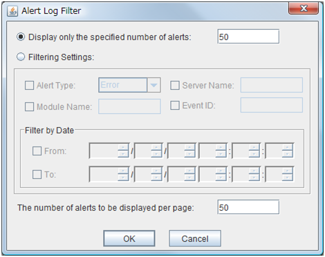 Searches alerts. This is the same as clicking Tool on the menu bar and then selecting Filter Alerts.