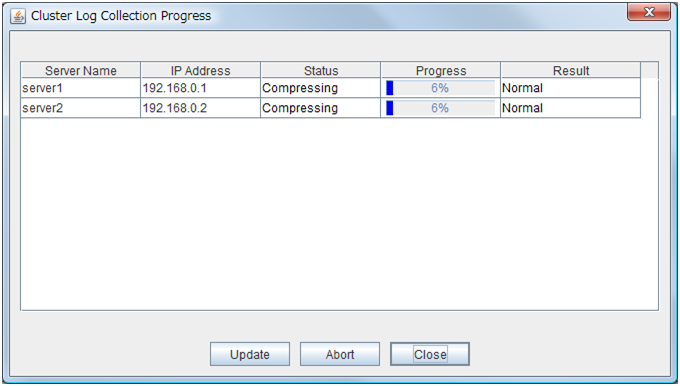 Collect logs. This is the same as clicking Tool on the menu bar and then selecting Collect cluster logs