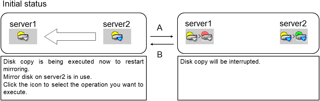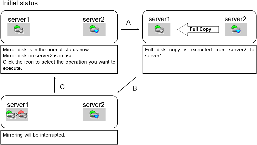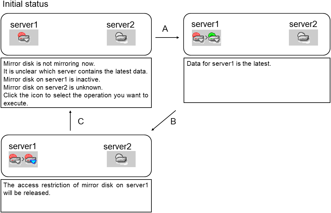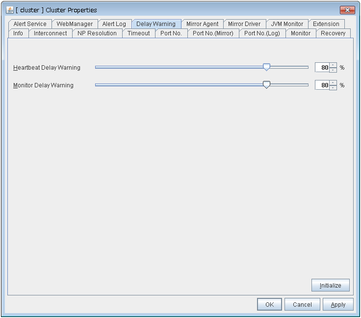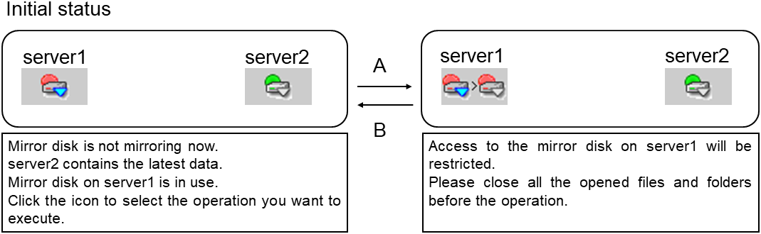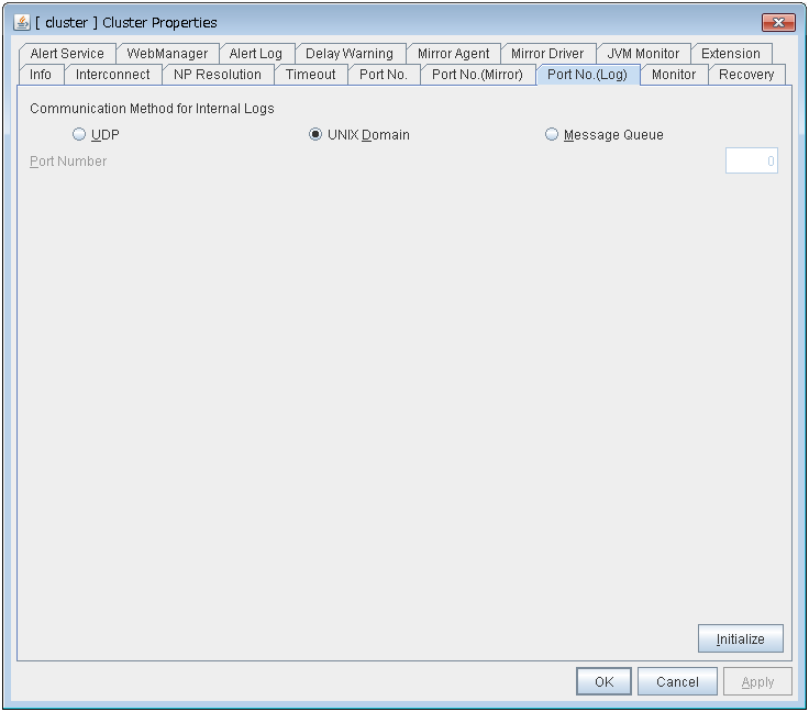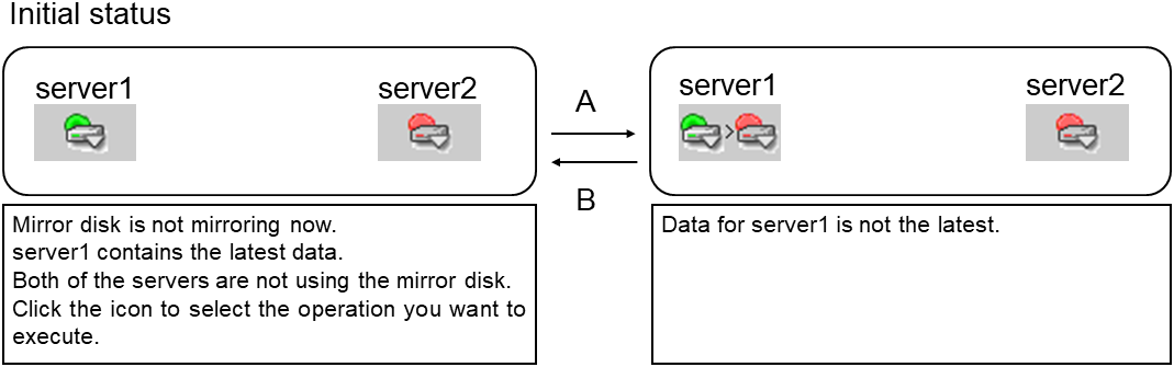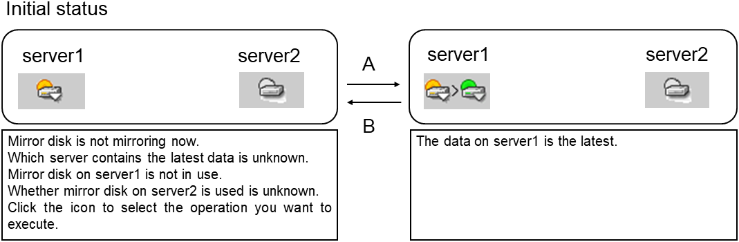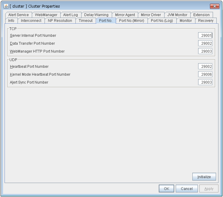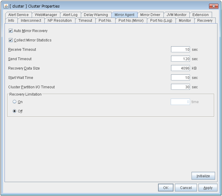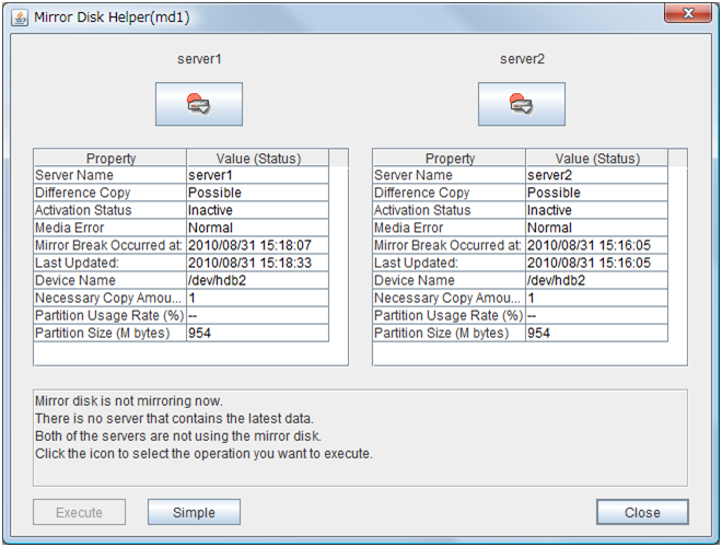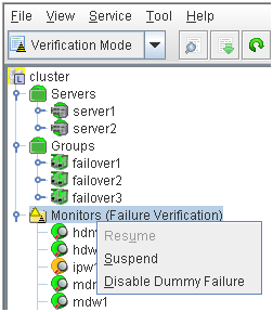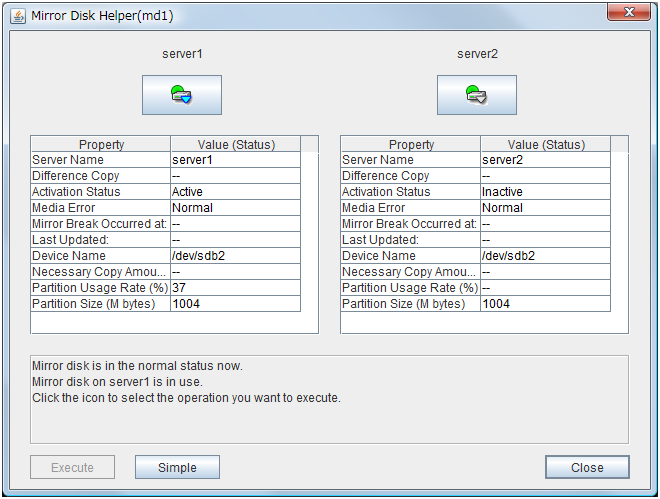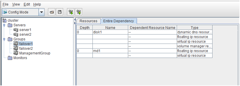 - There are naming rules that are the same as the host name of TCP/IP that can be set by the OS.- Up to 31 characters (31 bytes).- Names cannot start or end with a hyphen (-) or a space.- A name consisting of only numbers is not allowed. Cluster stopMirror agent stopMirror agent startCluster startNames should be unique (case-insensitive) in the server group. PropertiesDisplay the properties of the selected server group. NameDisplay the server group name. ServersDisplay the server names which belong to the server group.