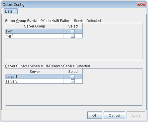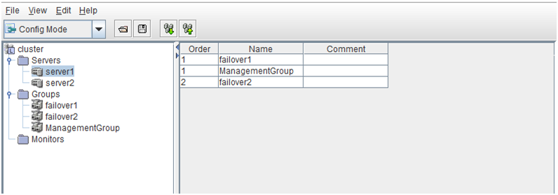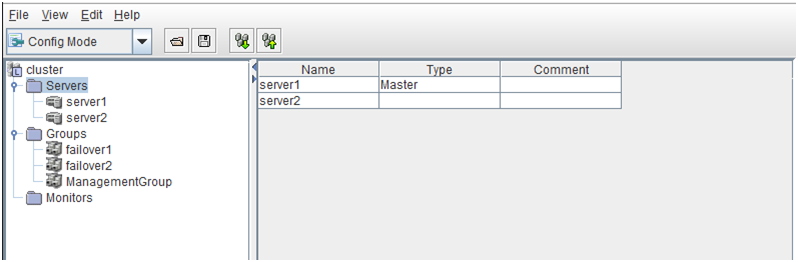Configure the priority order of the servers and the server group. All the registered servers are displayed. Master server is the server to keep the master of cluster configuration information. And also, it is the server of the highest priority order.
