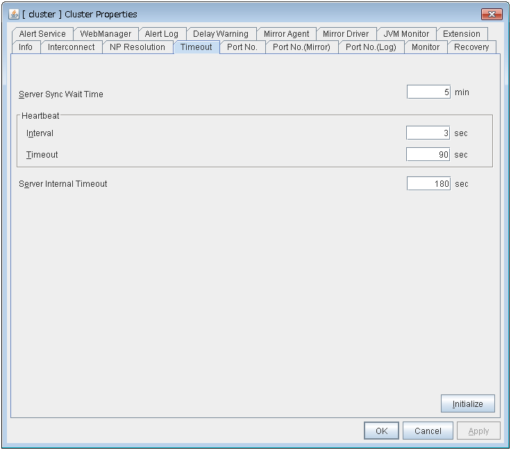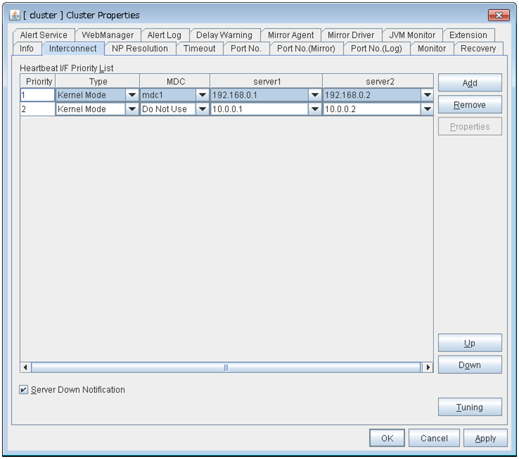 Configure individual settings on each server constructing the cluster in Server Properties.