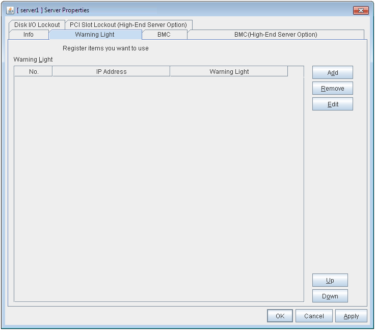 One warning light is required per one server. Do not set an IP address of the same warning light to multiple servers.